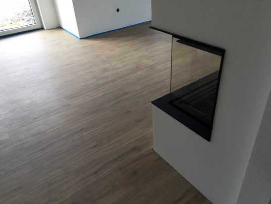 Auch das Obergeschoss zeigt sich im gradlinigen Baustil des Hauses. Hier finden Sie drei Zimmer, die Sie nach Ihren Vorstellungen als Schlaf-, Kinder- oder Gästezimmer nutzen können. Große Fenster lassen auch hier viel Tageslicht hineinströmen. Die Ankleide im Schlafzimmer bietet viel Stauraum.