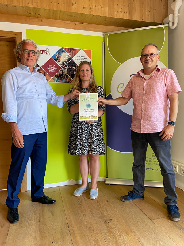 Oliver Zahn übergibt die Förderurkunde an Christina Laumer,