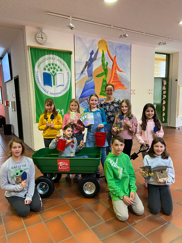 Mit dem Gemüseanbau-Projekt SortenVielfalt werden die Schulkinder vom kleinen Gemüsesamen bis zum knackigen Radieschen – säen, pflegen und ernten. Oliver Zahn, Stiftungsbotschafter und Geschäftsführer der Inn-Salzach Massivbau GmbH überreichte eine Fülle an samenfestem Saatgut an Gemüse- und Obstsorten sowie verschiedene Gartengeräte für die kleinen Gärtnerinnen und Gärtner. Herr Zahn erweiterte auf eigene Kosten die beiden Projekte mit einer tollen Aktion: Ein großer grüner Bollerwagen und ein 150 EUR Pflanzgutschein für die benachbarte Klostergärtnerei Gars am Inn sorgten für noch mehr Begeisterung bald im Schulgarten aktiv zu werden.